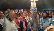 Believers of the UOC in Kuty celebrate their patron saint’s day in a military tent