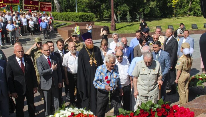 The Dean of temples of the Odessa diocese, Archpriest Pavel Poleshchuk took part in laying flowers to the Unknown Sailor Memorial on the Walk of Fame in T. G. Shevchenko Park.