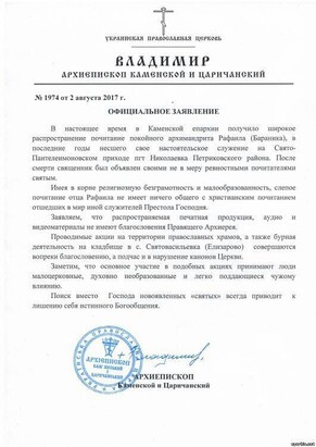 Archbishop Vladimir pays special attention to the fact that the activities of admirers of Archimandrite Raphael are conducted without the blessing of the ruling bishop.