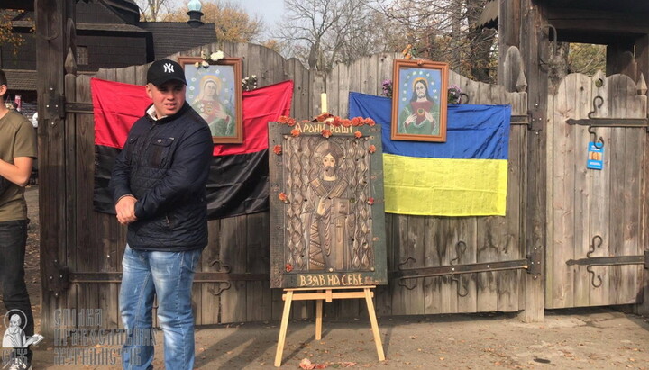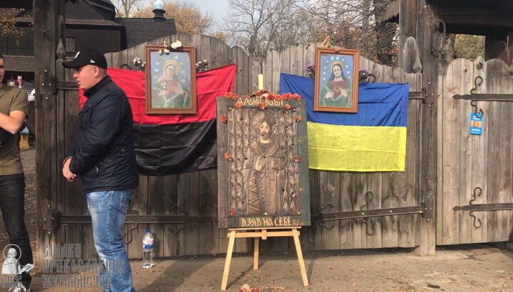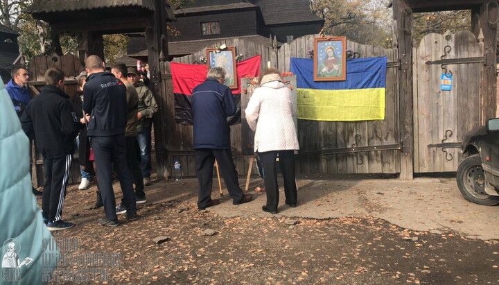 On the fence around the Annunciation Church, representatives of the UGCC hung the flag of Ukraine and a red-black flag. Over both banners, icons were attached.