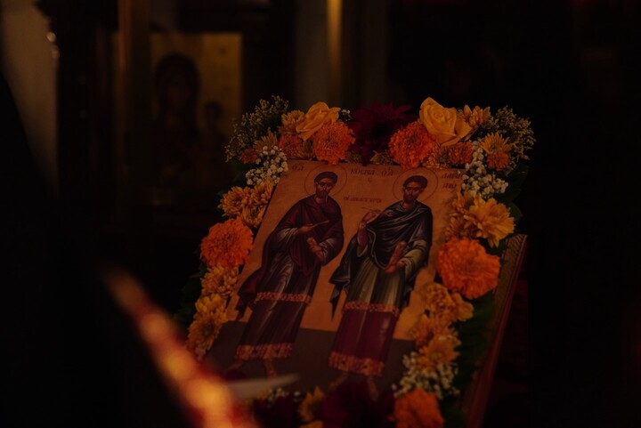 BROOKLINE — Late on Friday evening, Oct. 31, 2025, the Hellenic College Holy Cross (HCHC) community held an all-night vigil for the feast of Ss. Kosmas and Damianos, the patron saints of the Philoptochos Society. During Great Vespers, a special Artoklasia service was celebrated, commemorating all members of the National Board of Philoptochos and the Society’s faithful members across the country.