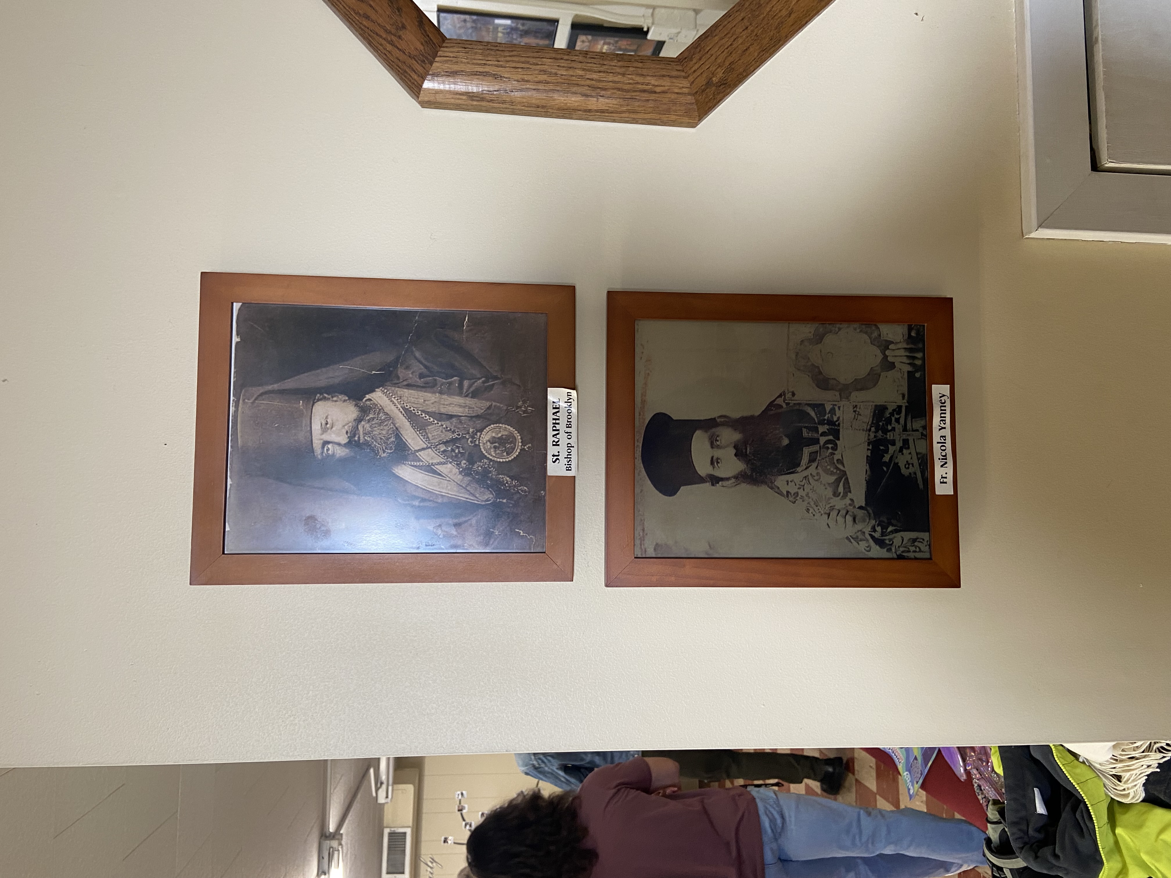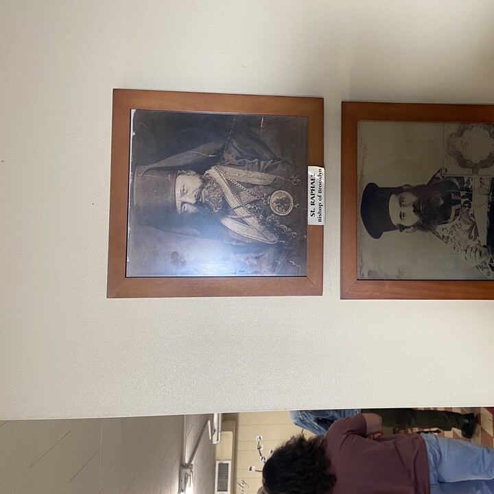 In the nave, there is an icon of St. Raphael and Fr. Nicola holding up the church, and Fr. Nicola’s Gospel book also remains out for veneration. Even when one enters the fellowship hall, the wall to the right of the stairs contains two photos: one of St. Raphael, and one of Fr. Nicola.