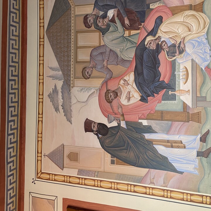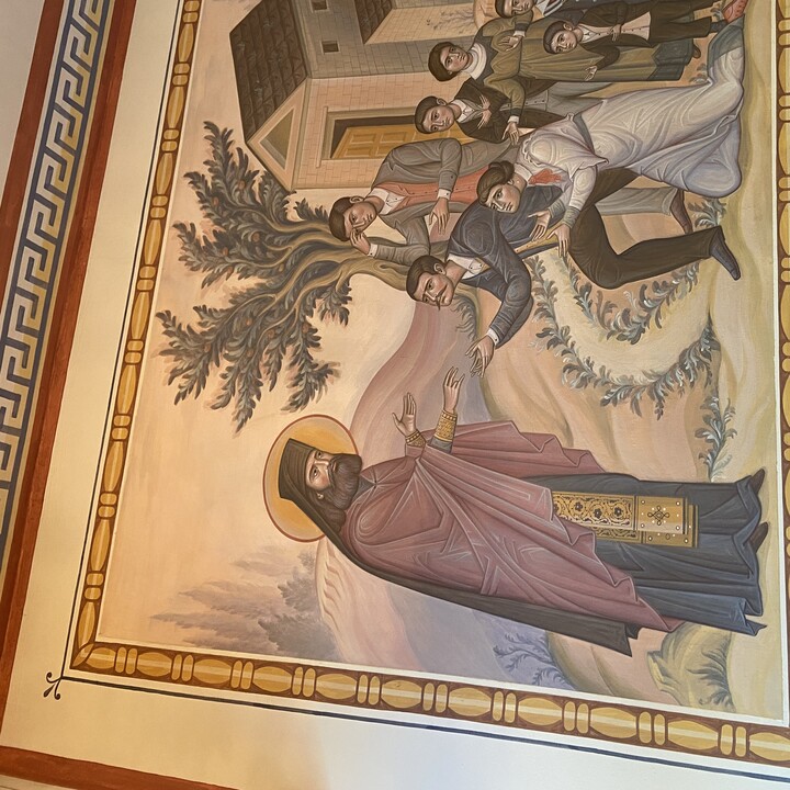 When one enters St. George in Kearney, Neb., they are immediately in the presence of iconography depicting the holy man. To the left is a depiction of St. Raphael’s visit to the Yanney homestead in 1899, in the center is a depiction of Fr. Nicola communing the sick in 1918, and to the right is the ordination of Fr. Nicola by St. Raphael in New York, 1904.